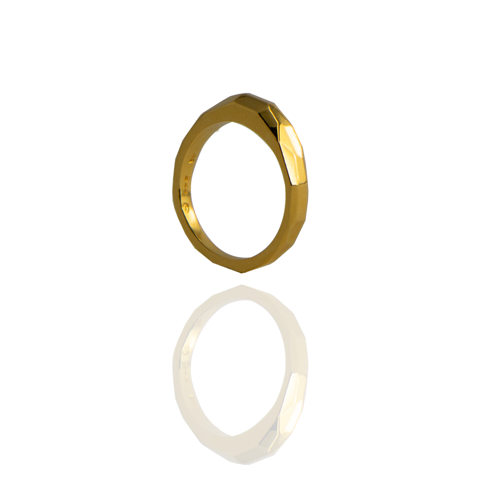 Épure, c’est une bague toute simple — facettée, un peu plus bombée sur le dessus, un anneau qui garde une présence douce et minimale.