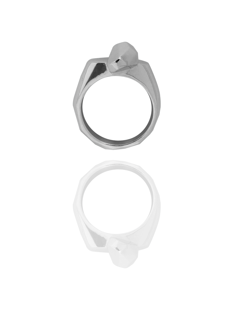 Son anneau arrondi, charnu et confortable, est surmonté d’une pépite sculptée à la main, comme un signe d’appartenance subtil et personnel.