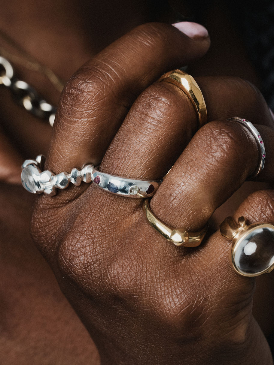 Joséphine est une bague à la fois sauvage et raffinée — un fragment brut qui sublime la main.